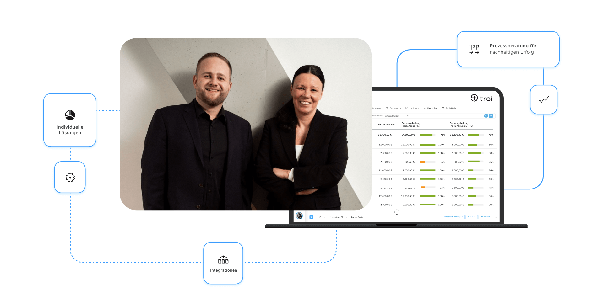 Die beste Software funktioniert nur im Einklang mit optimalen Prozessen. Bei Troi gehen Software und Prozessoptimierung Hand in Hand.